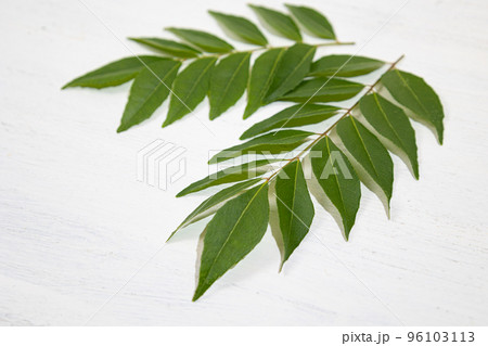 カレーリーフ(生):「カレーノキ」の葉のこと。インドなどでスパイスとして使用される