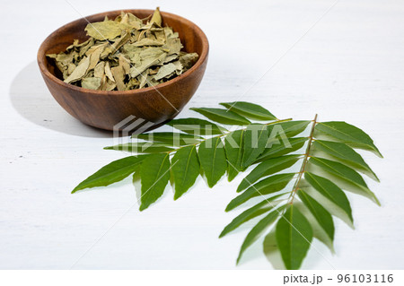 カレーリーフ(乾燥させたもの)(Curry leaf)、インド産. 別名:ナンヨウザンショウ