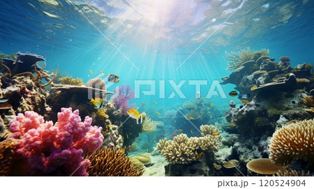 Underwater view of tropical paradise fish and corals. The concept of diving and vacation in nature. AI generated