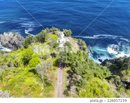 空撮「岩手県」130mの断崖に建つ白亜の黒崎灯台 岩手県