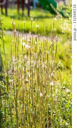 自然 植物 メリケンカルカヤ、イネ科にしては少なめの種には綿毛があり風で運ばれるようです