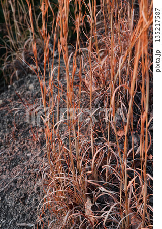 自然 植物 メリケンカルカヤ、直立した茎は枯れた後もそのまま立ち続けます