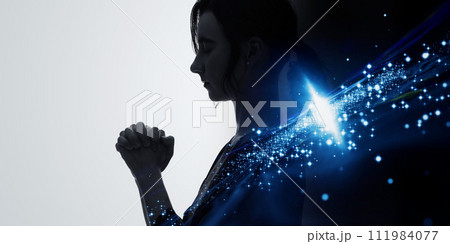 瞑想する女性と精神世界のイメージ マインドフルネス