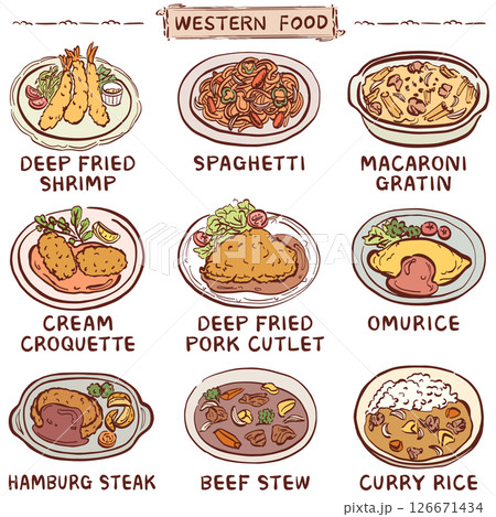 日本食イラスト 洋食アイコンセット 食事メニュー素材
