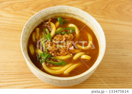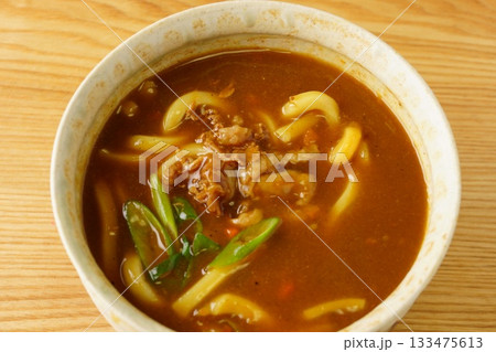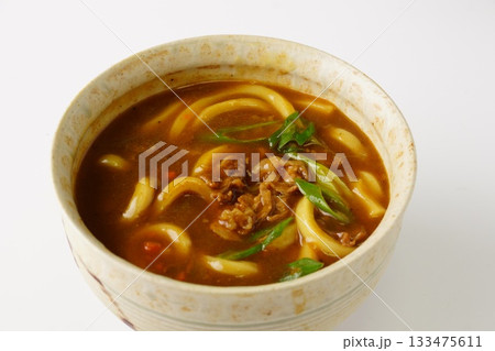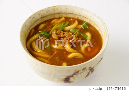 注意)湯気は合成です。冬の食べ物「カレーうどん」「カレー饂飩」「かれーうどん」。うどんカレー味、