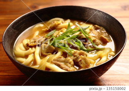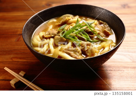 注)湯気は合成です。熱々のカレーうどん、カレー饂飩、冬料理、麺料理。