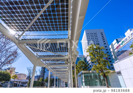 日本の川崎都市景観 川崎駅前のソーラパネルなど望む