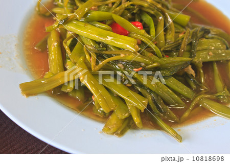 Stir fried Chinese morning glory with soya beans