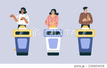 A vibrant array of contestants showcasing their knowledge at an exciting trivia game show setting