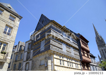 Old Building In The Streets Of Finistere City Guilvinec At The Coast Of Atlantic In Brittany, France