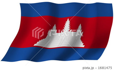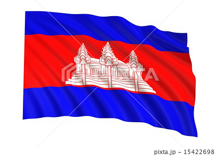 カンボジア王国のはためく国旗の3Dイラスト(正面)