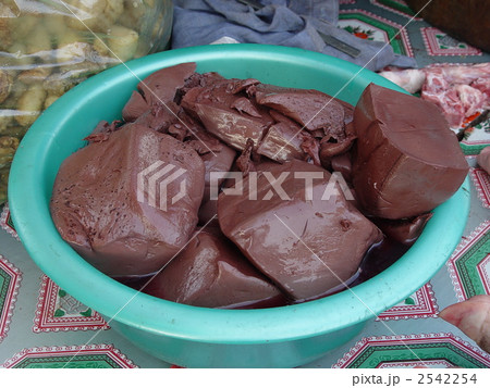 市場で売られるレバー(シェムリアップ/カンボジア)