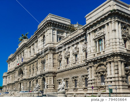 ローマ、テベレ川に架かるウンベルト1世橋から、パラッツォ ディ ジュスティツィア(正義の宮殿)