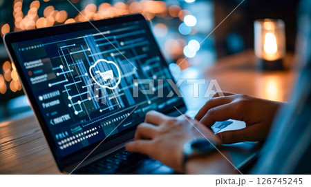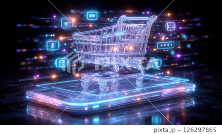 クラウド型ネットショッピングサイトの操作とデジタル取引のイメージ