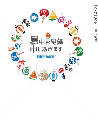 日本の夏の風物詩素材のリース、暑中見舞いイラスト