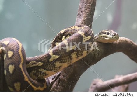 Closeup on a Carpet python, Morelia spilota harrisoni