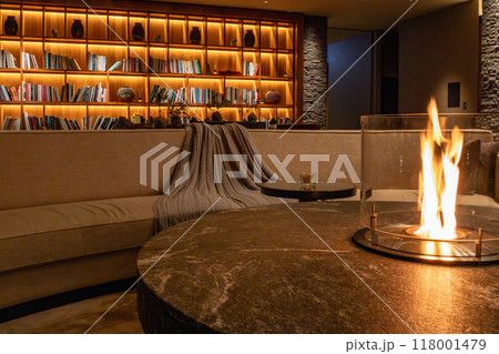 北海道 ニセコのリゾートホテル、東山ニセコビレッジ、リッツ・カールトン・リザーブ 夜のロビーラウンジ