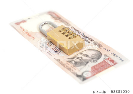Combination padlock on Indian currency rupee