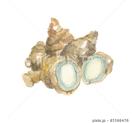 水彩で描いた紫ウコンの根 ガジュツ 莪朮