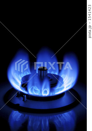 ガスコンロの炎,火のついたガスコンロ,天然ガスの炎,ガスコンロのバーナーから青い炎
