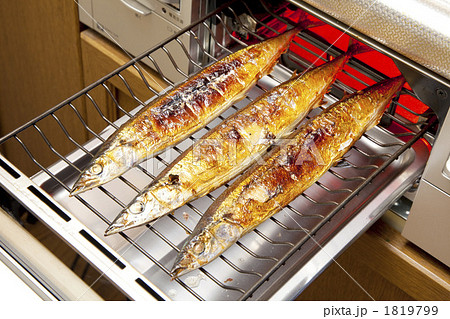 ガスレンジで焼くサンマ