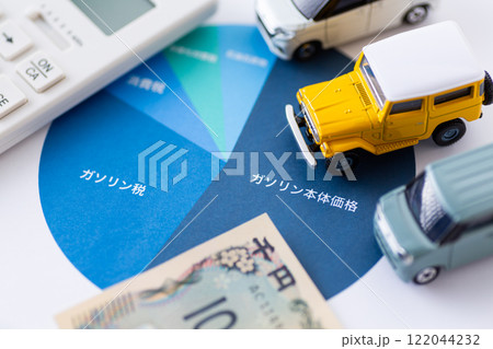ガソリン代金に占める税金の割合グラフと自動車