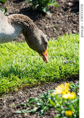 並んで歩くアヒルとガチョウ