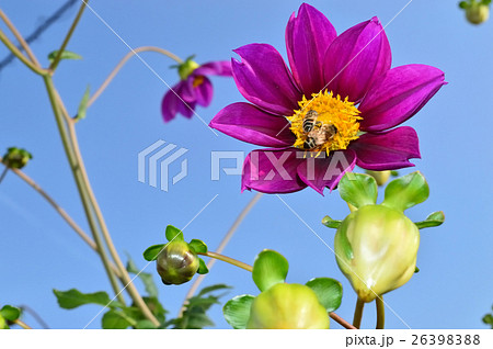 皇帝ダリア ハイブリッド種 ガッツァリアローズとミツバチ