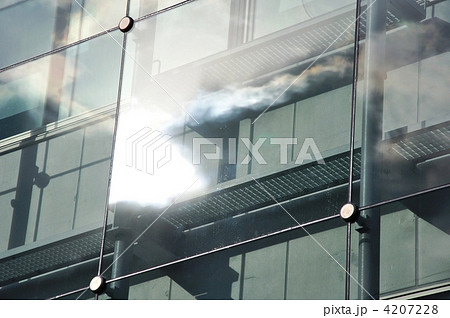 ビルのガラスに映りこんだ景色 窓に反射する風景