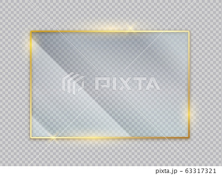 Gold glass transparent banners. Golden frame with glare reflection effect. Vector square acrylic isolated screen