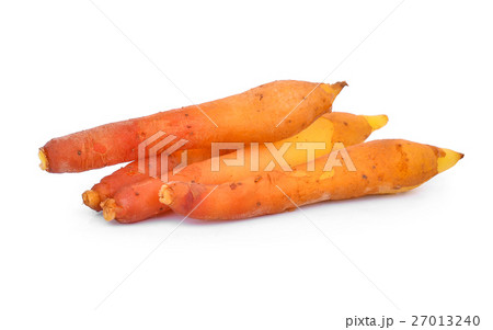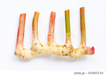Fresh galangal root isolated on white background with full depth of field. Top view. Flat lay