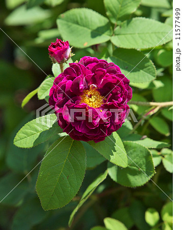 ダークピンクのバラの品種「ロサ ガリカ」のマクロアップ画像。
