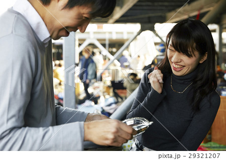 フリーマーケットを楽しむカップル