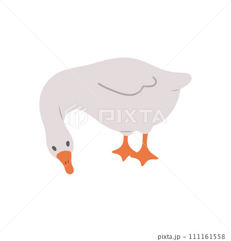 Cute farm goose. Domestic duck on white background. Agriculture bird. Village wildlife. Perfect for logo, greeting card and wrapping paper. Vector illustration in flat cartoon style