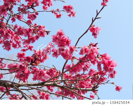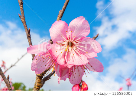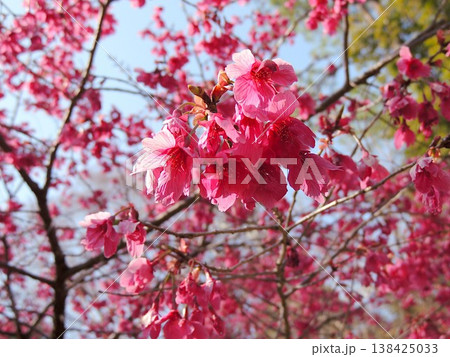 ピンク色が綺麗な緋寒桜の写真素材(沖縄県)