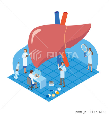 肝臓のメンテナンスをする作業員のイメージイラスト