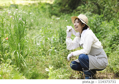 ガーデニングをする若い女性 撮影協力:三富今昔村