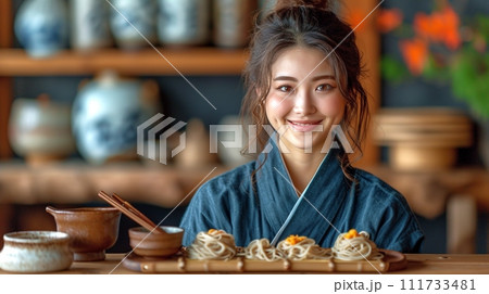 日本の伝統的なそば、うどんの定食