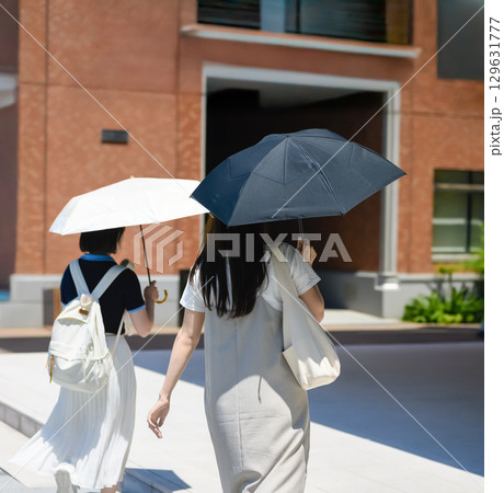 校舎の敷地内を歩く女子学生たちの後ろ姿