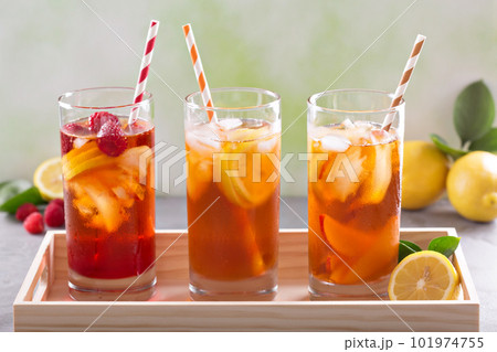 Iced tea variety in tall glasses