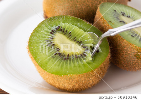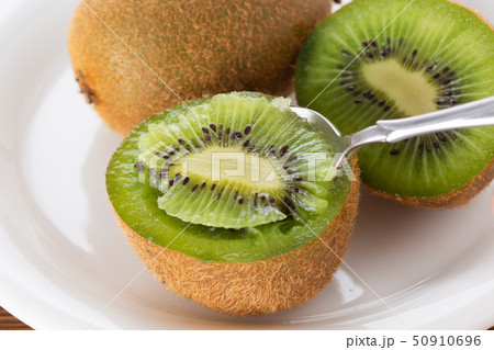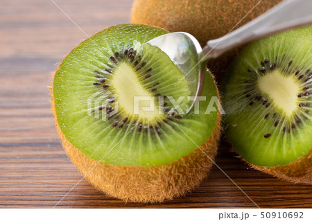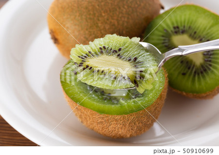 キウイフルーツ グリーンキウイ スプーン 断面 半分