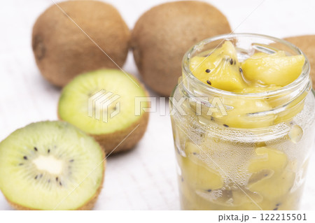 ガラス瓶に詰めたキウイジャム ガラス瓶に入ったキウイのコンフィチュール