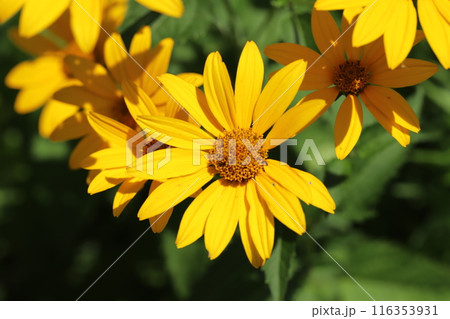 初夏の庭に咲く黄色いヘリオプシス(キクイモモドキ)の花