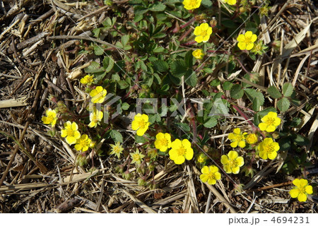 自然 植物 キジムシロ、バラ科の多年草。葉が地面に広がる様子を雉が休むムシロに例えた名前