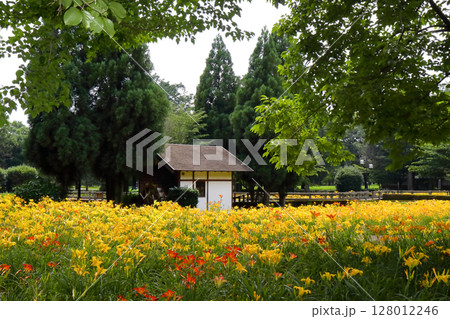 ロマンチック茨城(古河市「ネープルパーク」のキスゲ群生園。キスゲ類はニッコーキスゲとヘメロカリス。)