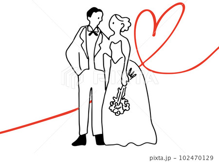 結婚式のカップルのイラスト(白の塗りがある線画)ハート線画Ver