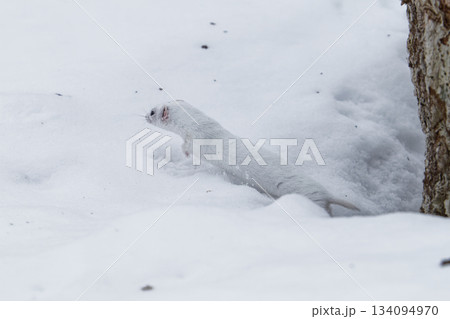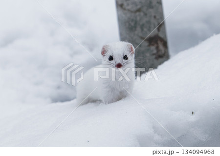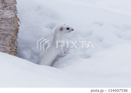 冬毛の白いイイズナ