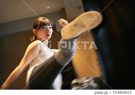 キックボクシングトレーニングをするアジア人女性