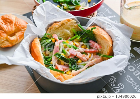 ミニクロワッサンを生地にするキッシュ作り