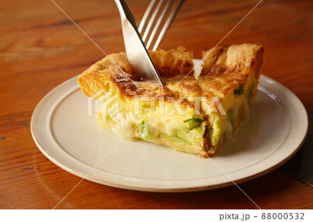 ジャガイモとカマンベールチーズのキッシュ(横位置ハイアングル)